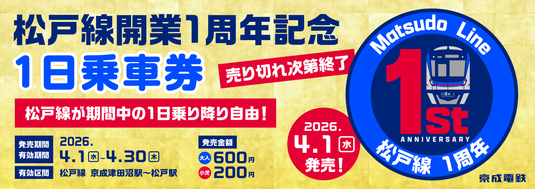 松戸線開業1周年記念企画を実施します