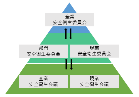 安全衛生の体制を強化するため、3階層の会議体を設置しています。